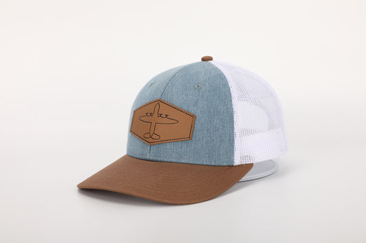 C130 Trucker Hat - 6 Panel Blue/Brown/White - Adult/Youth SizesRegular price From $24.00 USDRegular priceUnit price / per-