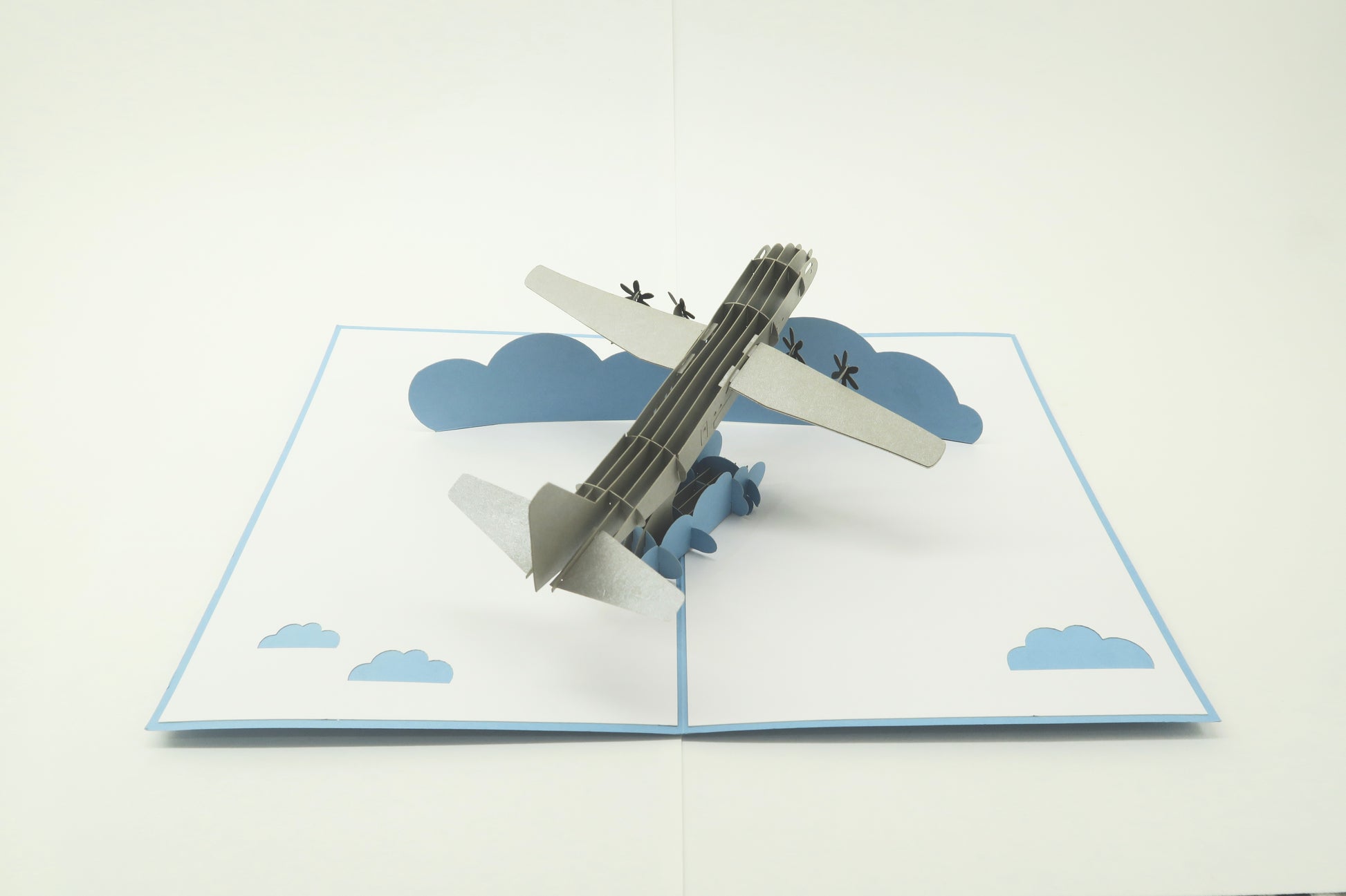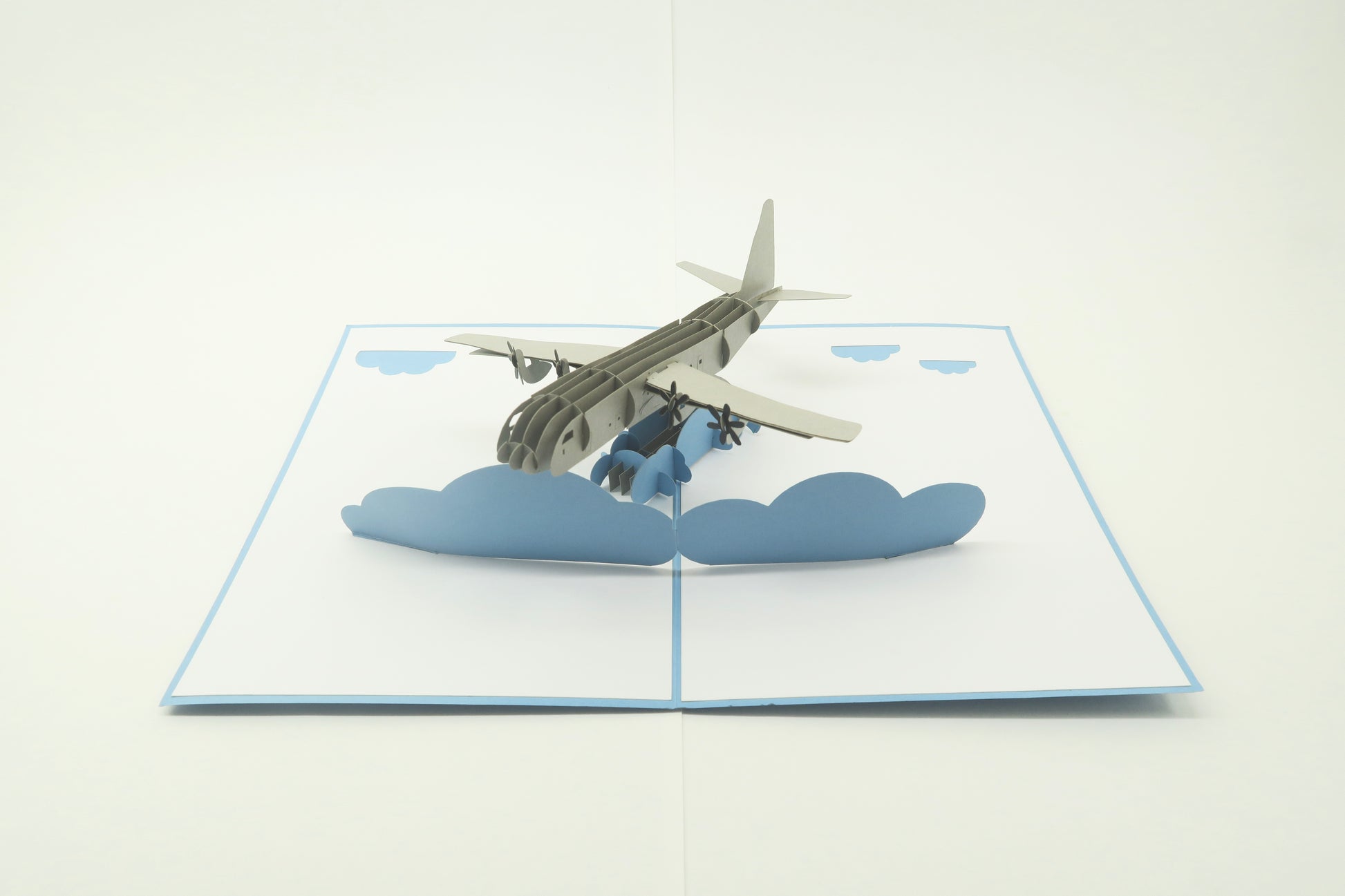 6"x8" Greeting Card! This is the perfect card to show off the C-130 to all your friends and family! Two card cover options available: C-130 formation airdrop, and "Oh the shitty shitty places you'll go." Upon opening the card, an awesome custom designed laser cut paper sculpture of a C-130 (6 blade prop - sorry) soaring through the clouds is revealed. The formation airdrop card has a laser cut front and back of card, while the "Oh the shitty shitty places you'll go" card is printed front and back.